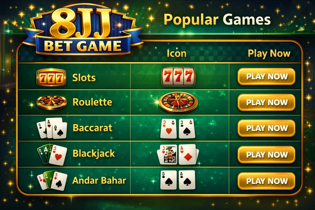 8JJ Bet Game is one of the top mobile casino apps in Pakistan, offering a wide range of popular games like slots, poker, roulette and live casino all in one platform. The online gaming application is easy to use, secure and allows fast withdrawals through local wallets like Easypaisa and JazzCash, making it convenient for everyone.