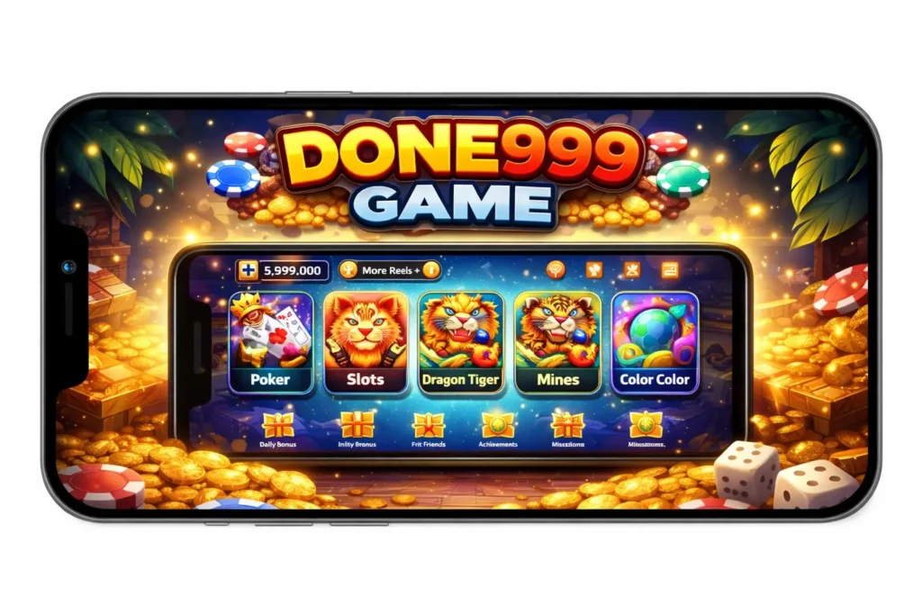 Done999 Game is a mobile entertainment platform designed mainly for Android users, with features like a simple interface, local payment support and different game options. Moreover, it focuses on easy access and user friendly design, which makes it suitable for people who prefer mobile based activities.